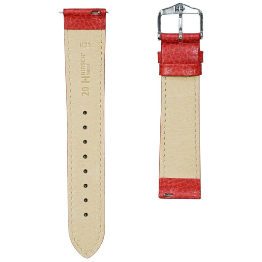 Hirsch KANSAS Buffalo Embossed Calf Leather Watch Strap in Red/White stitching