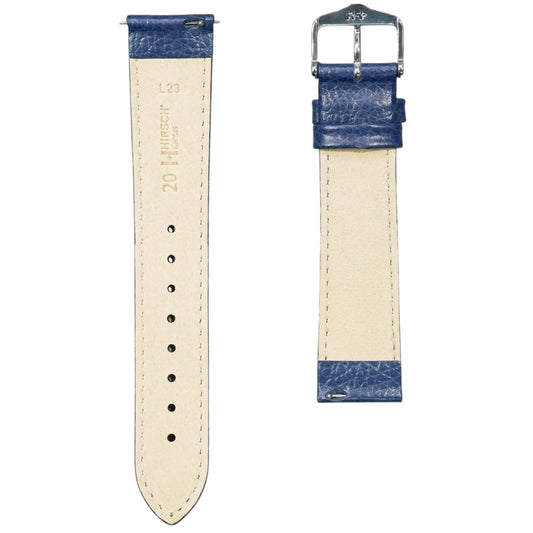 Hirsch KANSAS Buffalo Embossed Calf Leather Watch Strap in Blue